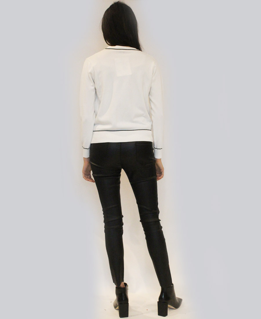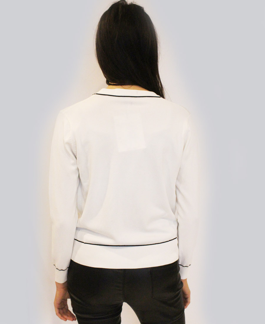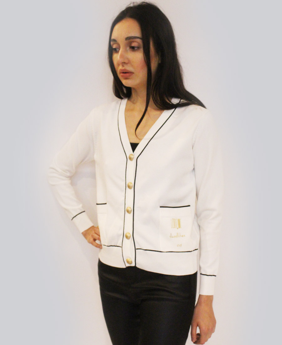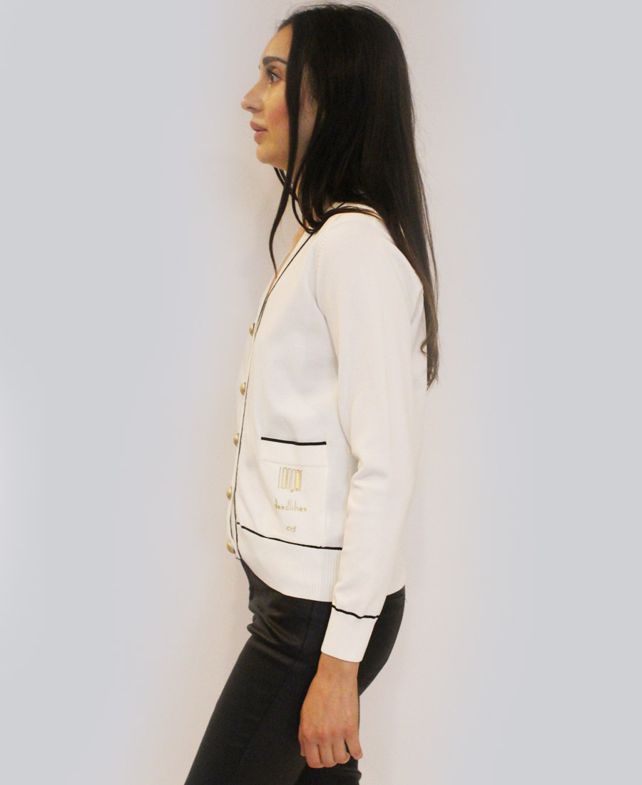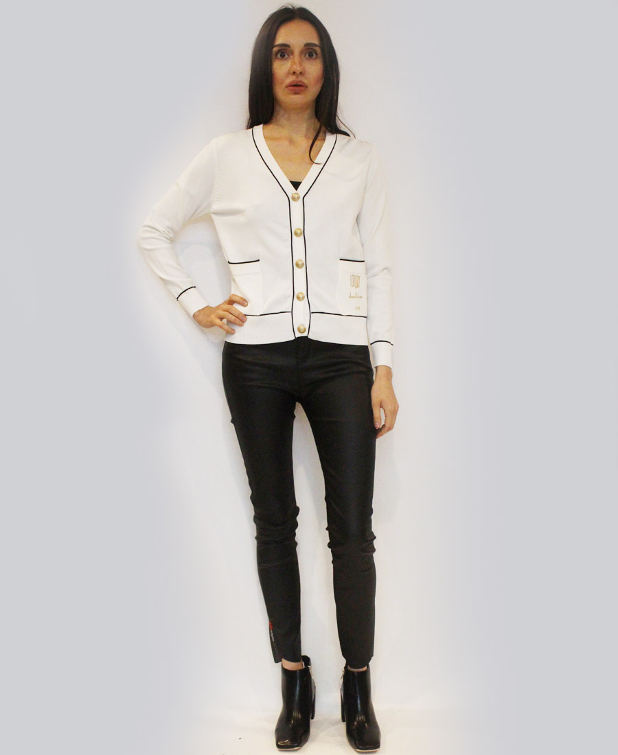 A comfortable cardigan with a contrasting twist to catch the eye!